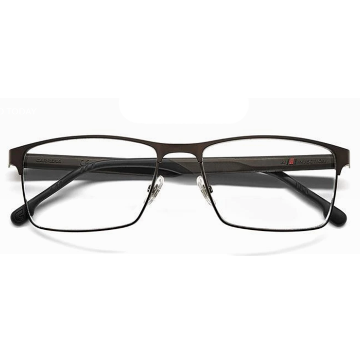 Perfect for an active lifestyle, these square-frame eyeglasses are characterized by a lightweight construction and minimalist design. The sleek full-rim metal front offers a subtle contrast to the sporty polyamide arms – crafted using bi-injection technology and accented with Megol rubber inserts for better grip. A set of flexible hinges means they comfortably adapt to any face shape.